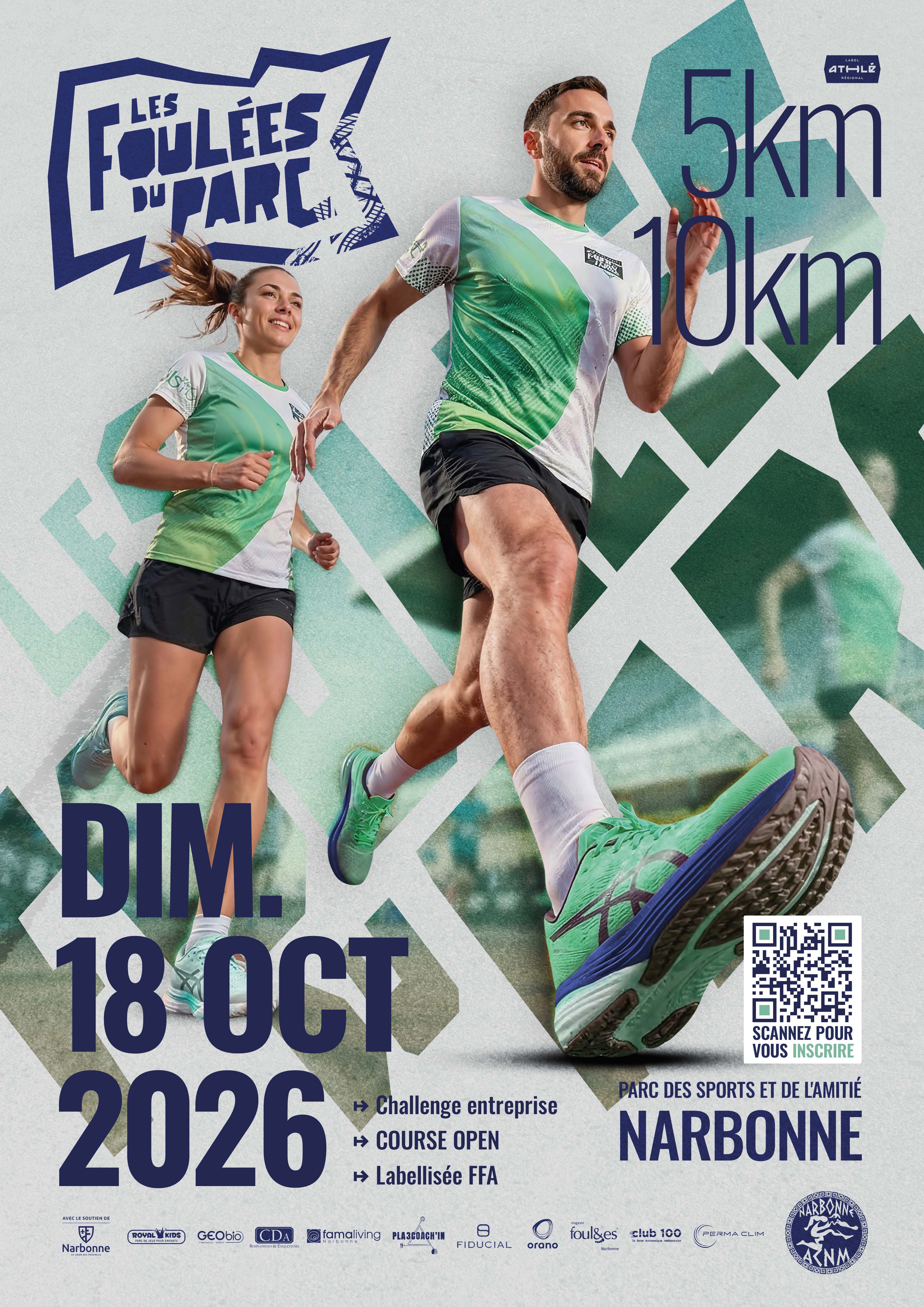 Les Foulées du Parc auront lieu le dimanche 18 octobre 2026, sur des routes bloquées à la circulation autour du Parc des Sports et de l’Amitié de Narbonne. (Avenue Pierre de Coubertin, Avenue Maître Hubert Mouly, ...)