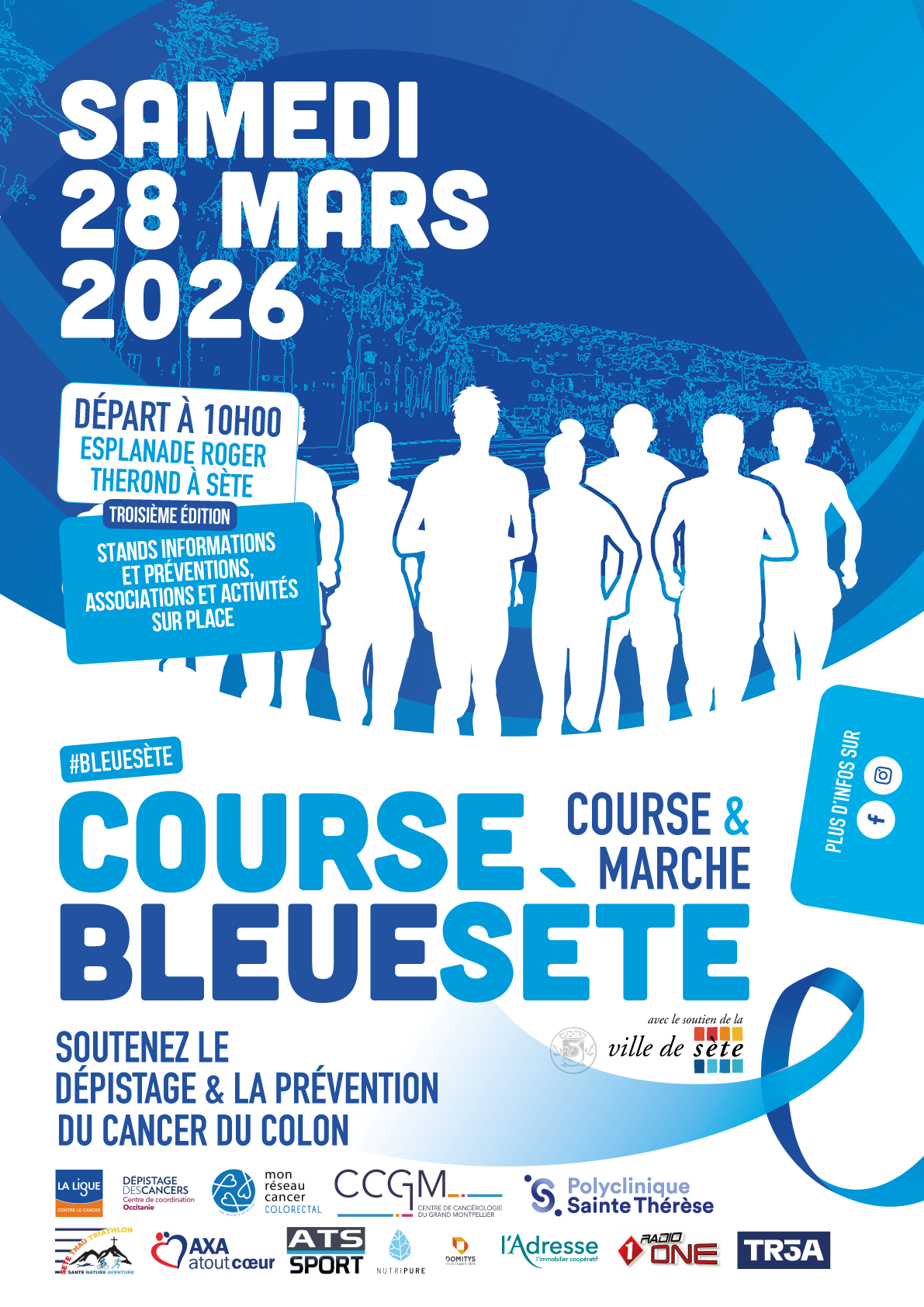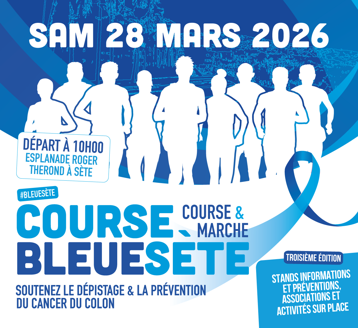Nous sommes ravis de vous confirmer la 4ème édition de la Course Bleue Sète le Samedi 28 Mars 2026 sur l’esplanade Roger THEROND à Sète.